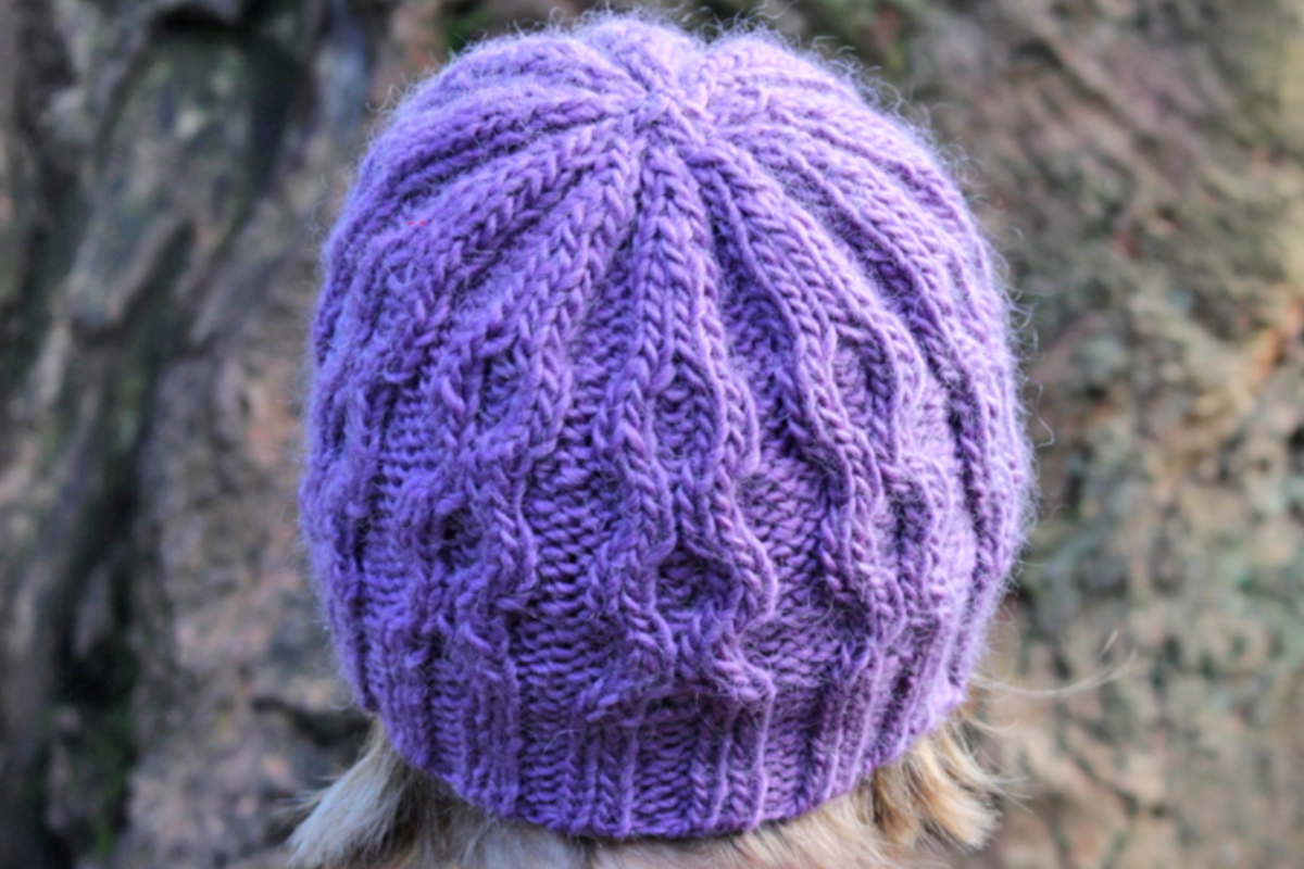 You knit Bubbles in the round from the rib up. You start with a tubular cast-on giving a lovely edge to the rib. The rib merges into the cable pattern, which in turn merges into the decreases on the crown.