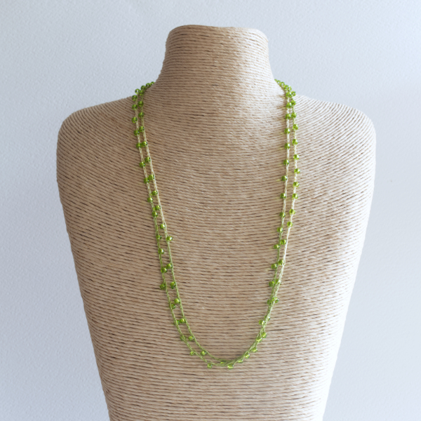 The instructions explain how to thread the beads onto the crochet thread and how to crochet the necklace. You need to know how to make a crochet chain.
