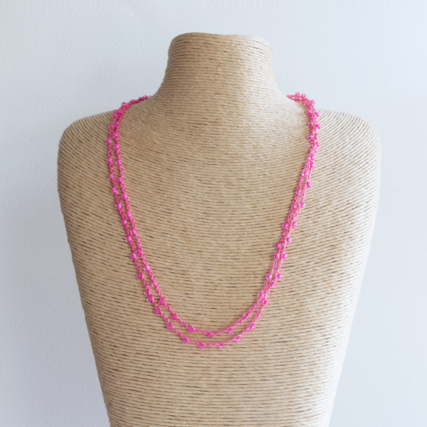 These sparkly, delicate beaded crochet necklaces look fantastic and couldn’t be easier to make. The necklace has been designed for new and beginner crocheters, but crocheters of all levels can have a go.